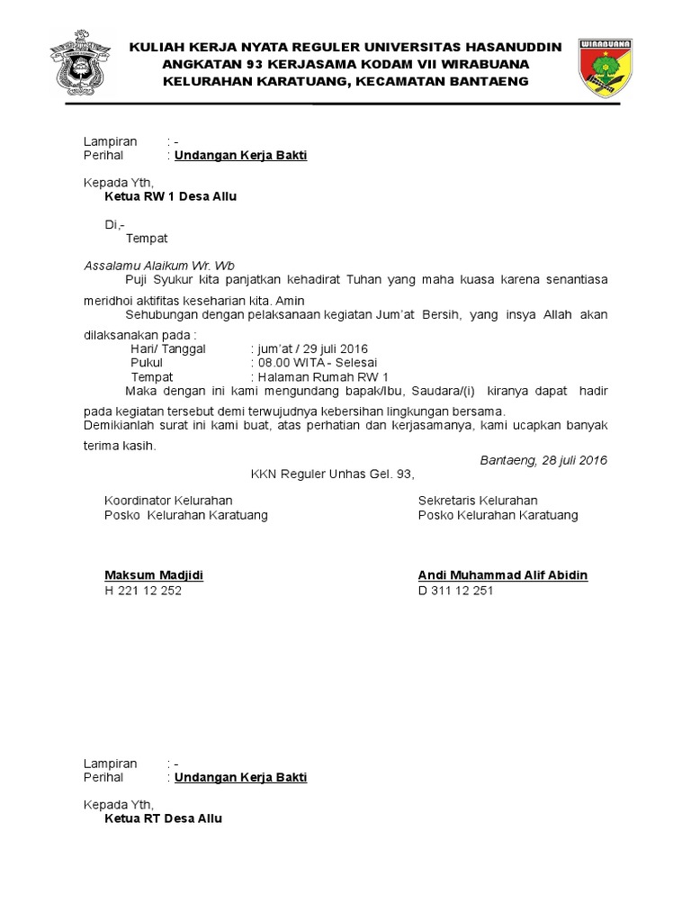 Karang taruna desa bagelen lampung, 22 september 2018 kepada : Berikut contoh yang bisa kamu jadikan sebagai referensi dalam membuat biasanya ciri ciri surat setengah resmi tidak menggunakan kop suart, namun biasa dipakai oleh lembaga yang yang belum memiliki skala yang. Sementara di surat undangan tidak terlalu banyak bicara tentang struktur dan sistematika. Salah satu surat resmi yang sering kali kita temui adalah surat undangan kerja bakti dari rt. Mengingat bahwa teknologi komunikasi saat ini.